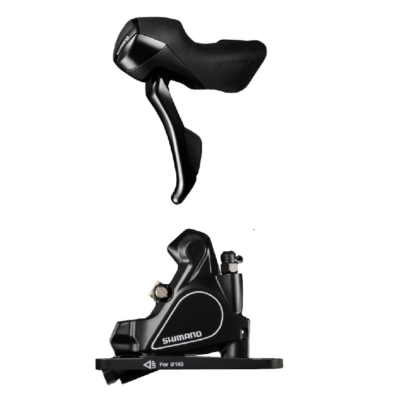 KOČNICA DISK SASTAVLJENA/J-KIT SHIMANO ST-RS405(L) BR-RS405(F/FLAT MOUNT), ZA ROTOR 140MM, RESIN PLOČICE (BEZ HLADNJAKA), SAJLA MJENJAČA 1800MM, BUŽIR SM-BH59 1000MM CRN, BULK